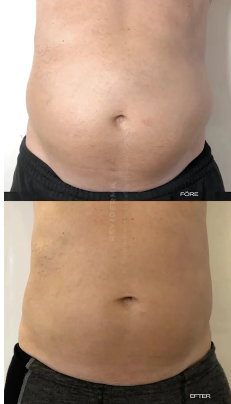 Behandlingen minskar envisa fettansamlingar samtidigt som huden blir fastare och jämnare.
